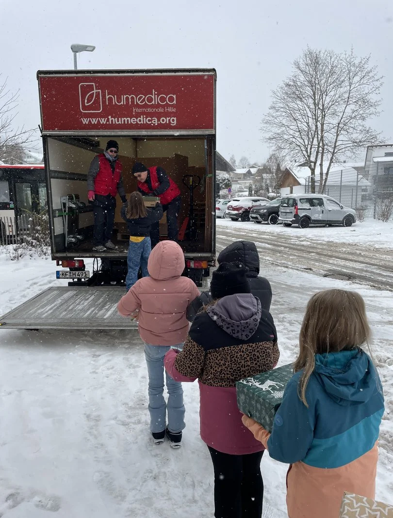 Im November rückt ein LKW an, um alle fleißig bestückten Weihnachtspäckchen für Kinder in armen Ländern abzuholen.