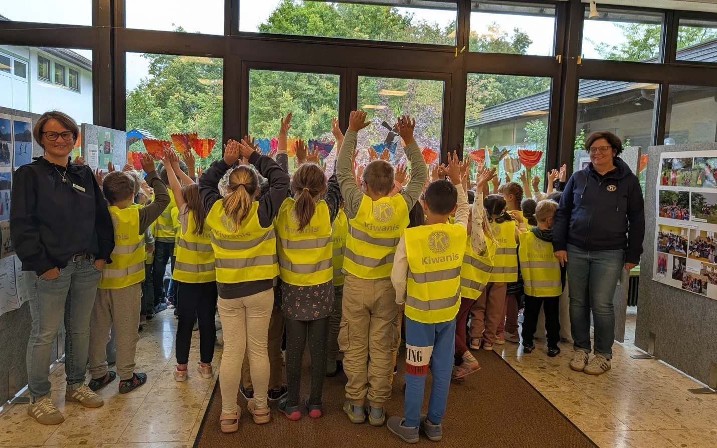 Jedes Jahr zum Schuljahresbeginn erhalten unsere Schulanfänger Warnwesten vom Kiwanisclub Immenstadt.